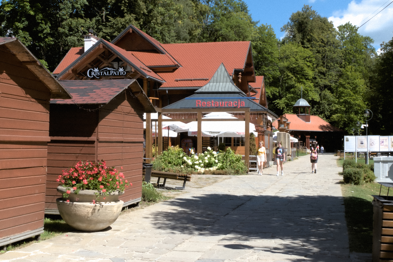 Trzeba jednak pamiętać, że Krynica nie oferuje taniego wypoczynku, oczywiście pomijając ten refundowany. Kuracjusze, którym uda się zaskarbić przychylność NFZ mogą liczyć luksus w przystępnej cenie. Pozostałej części pozostaje natomiast płacić i płakać. Na tym przecież polega cała idea prestiżu, tu nie może być zbyt łatwo. Każda knajpa, każda atrakcja, każdy sklepik skłania do jakiegoś wydatku. Zresztą, na to liczą miejscowi, nacięcie warszawskiego cwaniaczka to nie tylko przyjemność, ale i obowiązek. Tak, są miejsca, gdzie można trochę wyhamować, ale musieliśmy ich poszukać. W istocie rzeczy Krynica zachęca raczej do konsumpcjonistycznego trybu życia typu selfiaczek z kawusią i serniczkiem na tarasie, lub futerko albo kurteczka góralska za krocie, albo wieczorek bani u cygana w Cristalpatio. W trakcie wyjazdu musiałem się pilnować z moją rozrzutną naturą, a nie zawsze z nią wygrywałem. Niestety.