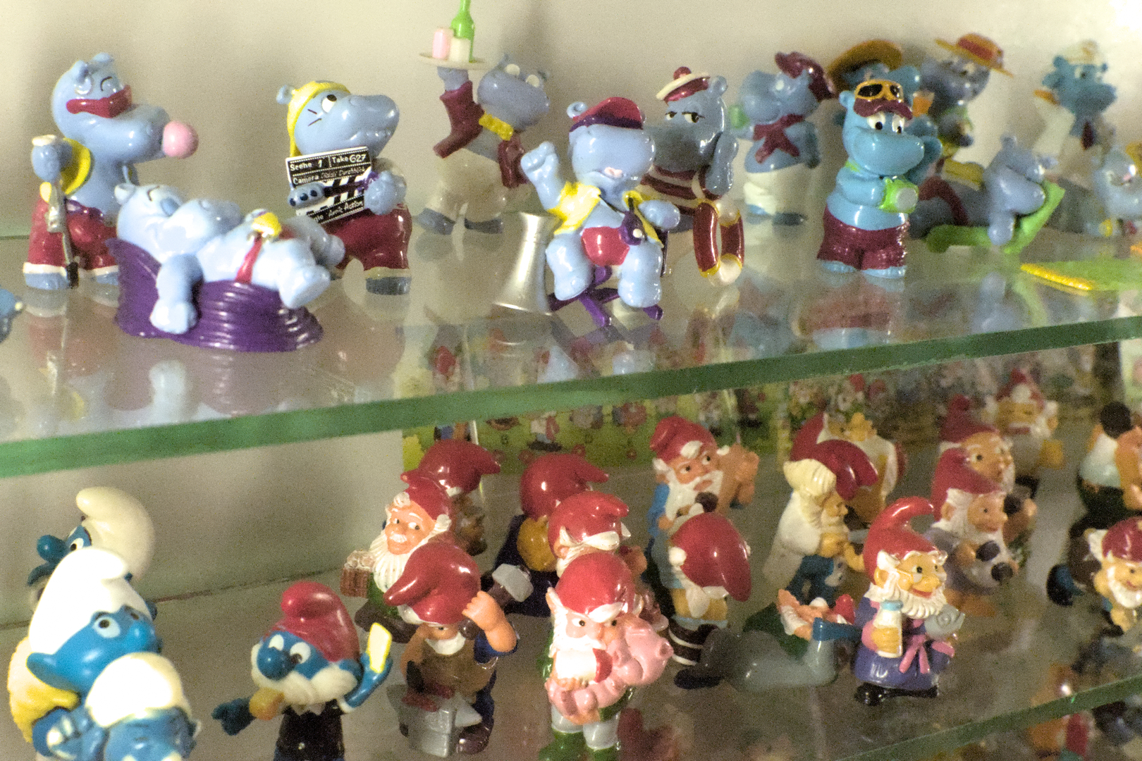 Przyjemne mrowienie odczułem również na widok gablotki kryjącą w sobie kolekcję figurek z Kinder Niespodzianki. Lwy na biwaku, hiposze w biurze, hiposze na rejsie, słonie na plaży, szkoła krokodyli, pustynne rekiny, rzemieślnicze krasnale, aloha żółwie, imprezowe pingwiny - wszystkie z nich pamiętam! O czym to świadczy? Jestem prehistoryczny, a we wcześnym dzieciństwie jadłem mnóstwo czekoladowych jajek, chociaż część z nich została skonsumowana przez starsze rodzeństwo, po którym odziedziczyłem cżęść z tych figurek. Jedno jest pewne, dzisiaj już nie ma takich eleganckich rzeczy do kolekcjonowania. Każda z tych maleństw to ręcznie malowane dzieło sztuki budżetowej. Powstały w czasach, kiedy Kinder Niespodzianka była warta grzechu, podobnie jak Happy Meal z McDonald’s.