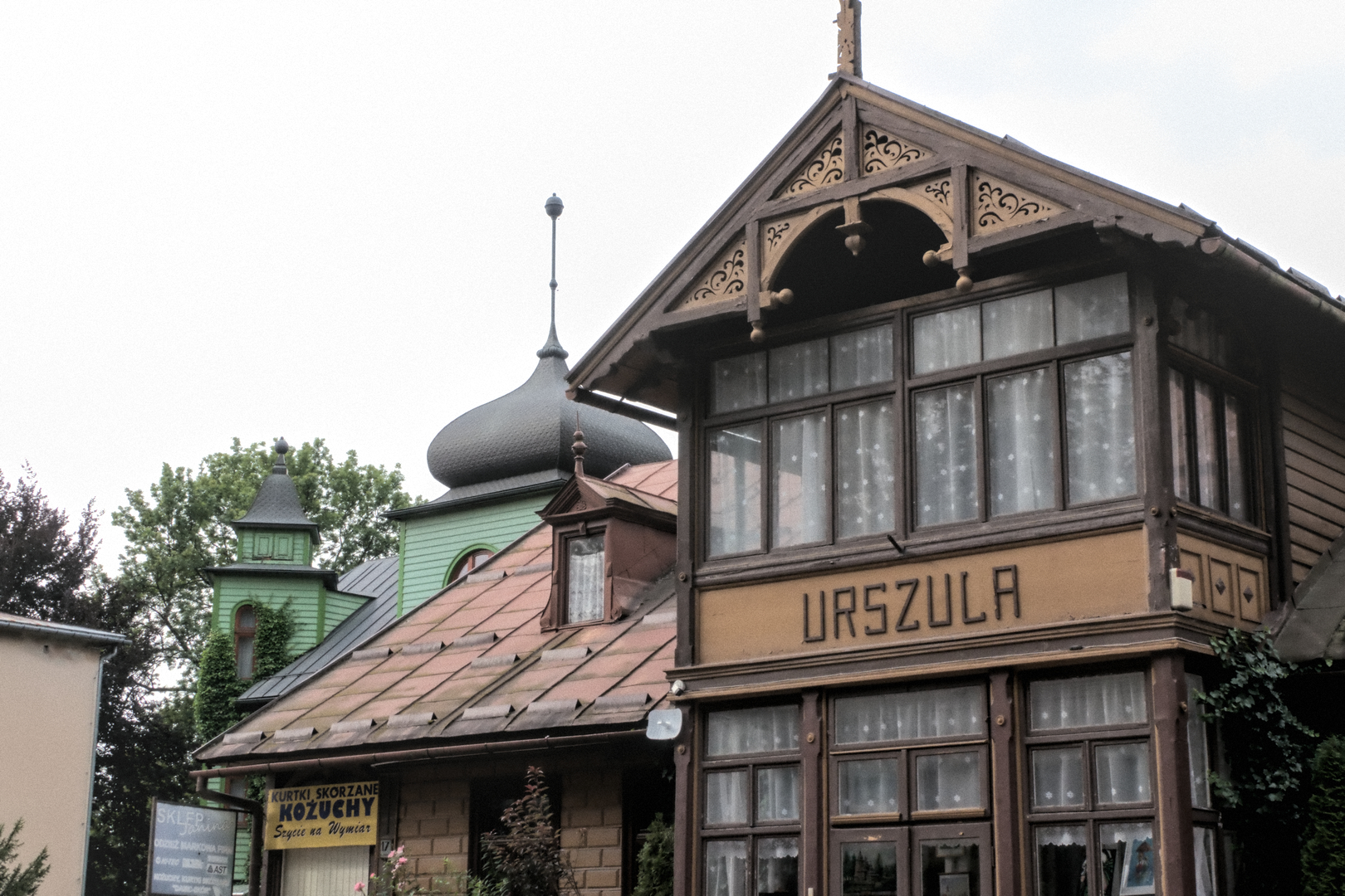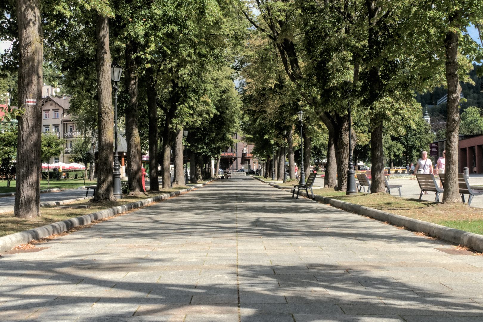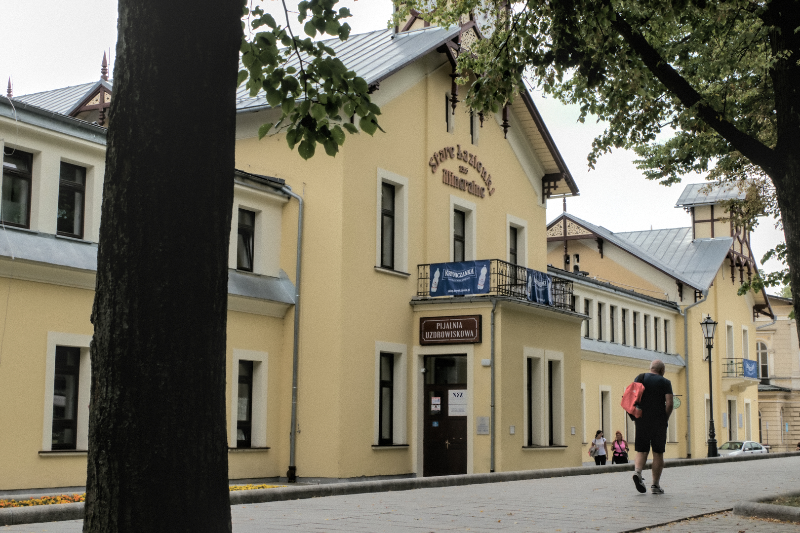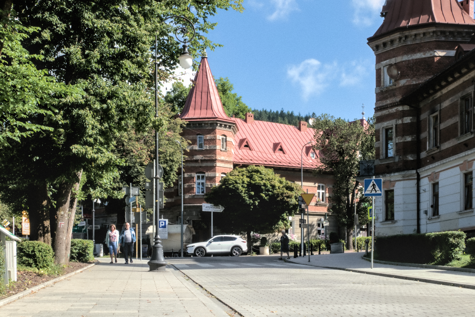 Krynica na każdym kroku zdaje się przypominać, skąd czerpie swoją tożsamość i do czego aspiruje. Jakby na moment zamknąć oczy, to rzeczywiście, czas w niektórych miejscach niewiele zmienił względem stanu rzeczy sprzed 100 lat temu i tylko detale nam przypominają jaki mamy rok. Na ogół jest to ciągłe wspominanie czasów świetności, czyli tego idyllicznego okresu międzywojnia. Od razu rzucają się w oczy wspaniałe, drewniane wille i murowane kamieniczki, ale jak okiem głębiej sięgnąć, można dopatrzyć się bardziej zapuszczonych budynków. Niektóre z nich mają ogłoszenia “na sprzedaż”. Pod warstwą pudru czuć, że nie każdy w Krynicy żyje dostatnie. Ale znów, łatwo poddać się atmosferze luzu i pozornej wytworności. Po chwili myślisz sobie, no jakbym się znalazł w tej II Rzeczypospolitej. Tu siedział Piłsudski, a tam spacerował Matejko. Czuć, że zachowała się tu pewną ciągłość historyczna.