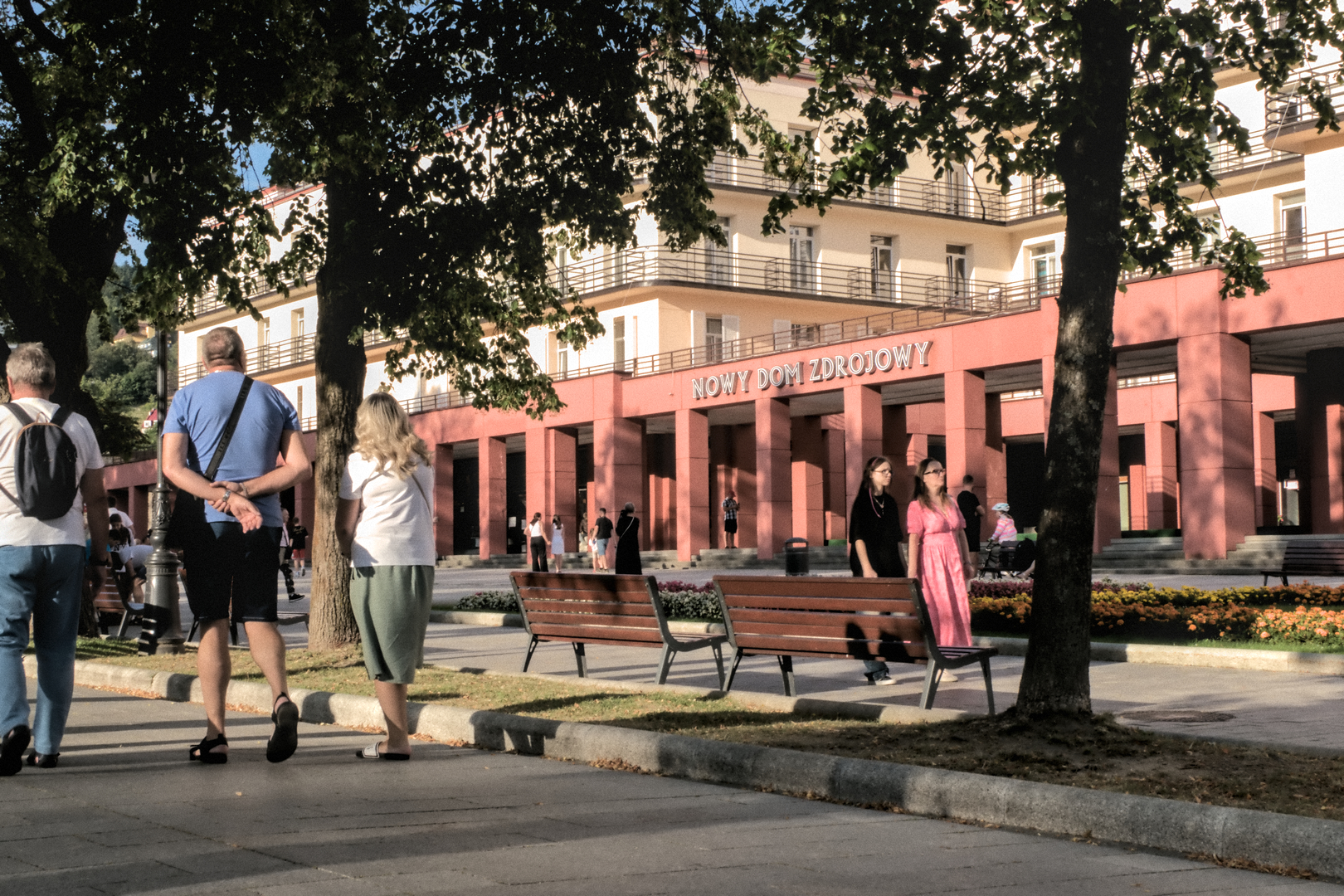 Trudno nie zwrócić uwagi na różowego słonia w składzie porcelany. Krynica to gorące miasto, buzujące emocjami, choć w świetle dnia trudno to dostrzec. Nie zapominajmy, że to uzdrowisko pełne sanatoriów, gdzie przyjeżdżają ludzie nie tylko wymagający rekonwalenscencji, ale także spragnieni rozrywki, lub nawet poszukujący drugiej młodości. Ciekawych tematu odsyłam do ostatniego sezonu Sanatorium Miłości, który rozgrywał się właśnie w Krynicy i pokazywał to i owo. I rzeczywiście, częstokroć mijałem ludzi w wieku emerytalnym, którzy ubiorem wcale nie odbiegali od standardów ukazywanych przez Telewizję Polską. Jakby szli na polowanie, chcieli się dobrze zaprezentować, i nie żadni tam skromni emeryci, co mijamy ich w warzywniaczku. Sprawiali wrażenie, że byliby w stanie pozwolić sobie na wypoczynek w Krynicy bez refundacji NFZ. Z drugiej strony, może to być tylko warstwa wierzchnia. Nie wiemy, co skrywają pod spodem i z jakim bagażem przyjechali. Może oni też potrzebują odrobiny luzu?