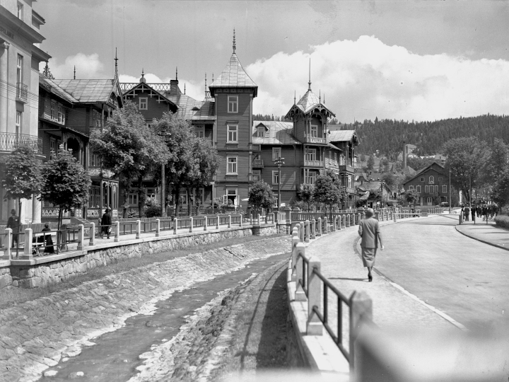 Rozkwit Krynicy przypada na okres międzywojenny, kiedy miejscowość zaczęła kojarzyć się z wypoczynkiem w atmosferze wygody i luksusu, w malowniczym otoczeniu gór. To stąd powstało znane powiedzenie “Kogo nie stać na Krynicę, jedzie zagranicę!”. Wypoczywali tu niegdyś Reymont, Conrad, Sienkiewicz, Dołęga-Mostowicz, Sienkiewicz… a bywały tu i większe nazwiska. “Ks. Juljana holenderska z ks. małżonkiem bawią w Krynicy!” — hucznie donosił zimą 1937 roku Ilustrowany Kuryer Codzienny (nr 11). Jej pobyt wzbudzał zachwyt i emocje, w końcu polskie uzdrowisko stało się wyborem europejskich elit, podjudzając aspiracje o wielkiej i dumnej II Rzeczypospolitej obecnej. Notabene, książęca para zatrzymała się wówczas w Hotelu Patria, o którym wspomnę nieco później.